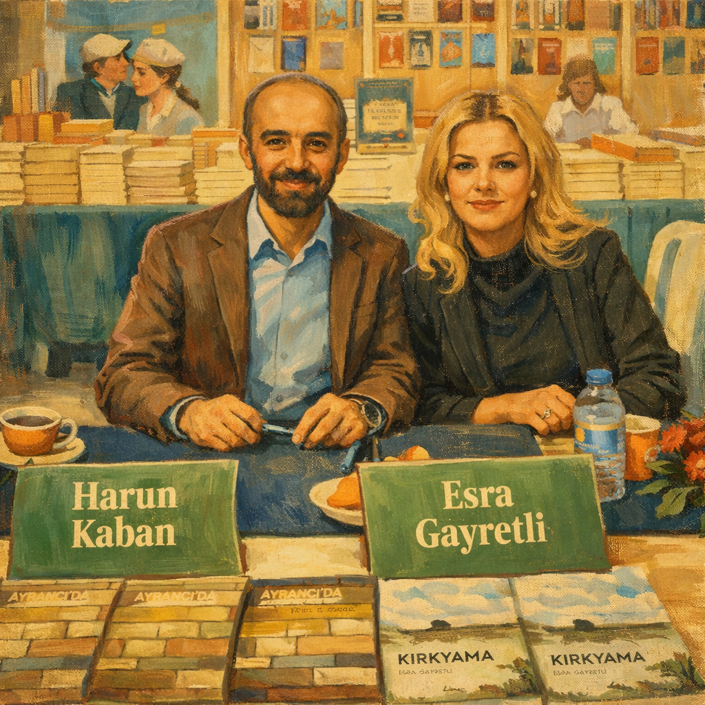 Sene 2024. Aile ve İçtimaî Hidemat Nazırlığı’nda katiplik yapıyorum. Meslektaşım Esra Gayretli de Gençlik ve Spor Nazırlığı’nda, geçen sene çıktı kitabı. Benim üçüncü kitabım yeni çıkmış, imza günündeyiz.